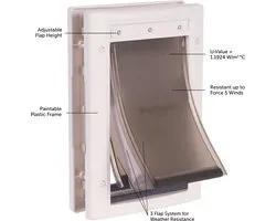 Het Petsafe hondenluik is speciaal ontworpen om bestand te zijn tegen extreme weersomstandigheden. Het heeft een stevige constructie en is voorzien van een isolerende flap die helpt om de temperatuur in uw huis te reguleren. Hierdoor blijft uw huis warm in de winter en koel in de zomer, terwijl het hondenluik toch functioneel blijft.