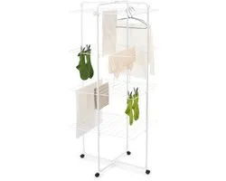 De Brabantia HangOn Droogtoren is een inklapbaar wasrek met een drooglengte van 30 meter, ideaal voor het drogen van wasgoed. Het biedt een ruimtebesparend ontwerp en is eenvoudig op te bergen. Met zijn stevige constructie en stijlvolle witte afwerking is het perfect voor elke wasruimte. Geschikt voor binnen en buiten gebruik.
