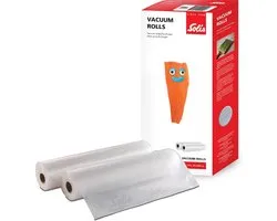 Solis Vacuumrollen zijn speciaal ontworpen folie rollen die gebruikt worden voor het vacuüm verpakken van voedsel. Ze zijn ideaal voor het bewaren van voedsel in de diepvries, het opwarmen in de magnetron en het sous vide koken. Met een afmeting van 30 x 600 cm bieden ze voldoende ruimte om verschillende soorten voedsel efficiënt te verpakken.