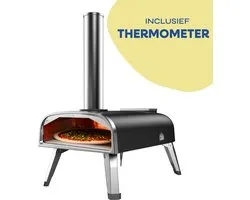 LIVIN' Pizzaoven Pellet - Pizzaovens voor buiten - 12" Pizzaoven - Pizza oven buiten - Pellet Pizza oven - Duurzaam - Pizzaoven voor buiten - Pizza Oven Houtgestookte - Pizza Oven Tuin - Inclusief Thermometer - Draagbaar - 55*36*27 CM - RVS - Zwart