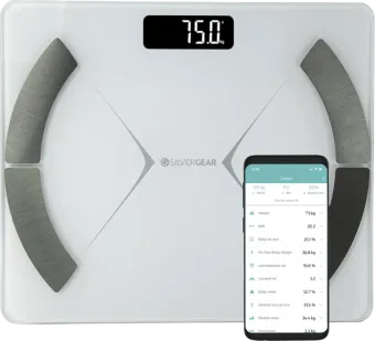 1 x Silvergear Weegschaal Personenweegschaal Digitaal, 1 x Handleiding Extra in Slimme Bluetooth Weegschaal combideal: 1x Slim Lichaamsmeetlint