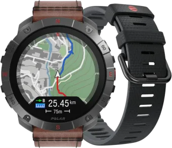 Polar Grit X2 Pro met lederen horlogeband maat M-L extra silicone horlogeband - maat S-L Polar Charge 2.0 USB-C oplaadkabel Snel van start gids Nota 'belangrijke informatie'