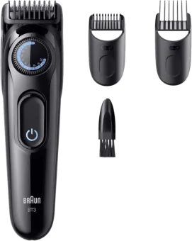 1 baardtrimmer, 2 kammen, 1 reinigingsborstel