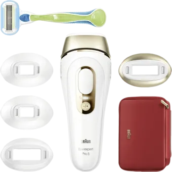 Braun IPL Silk-expert Pro 5, ontharing voor thuis, Etui, Venus-scheersysteem (handle + scheermesje), standaardkop, brede kop en 2 precisiekoppen