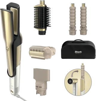 Shark Glam hoofdeenheid, Silki tool, Glossi tool, 2x Automatische krullers, Concentrator, Polisher, Opbergkoffertje
