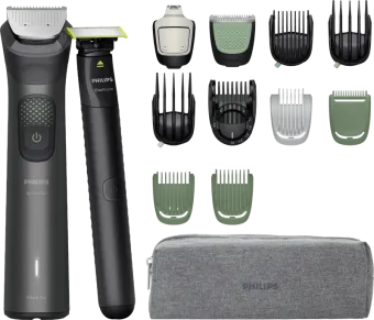 Trimmer, Zeven opzetkammen, Neushaartrimmer, Precisietrimmer, OneBlade, Reinigingsborsteltje, USB-A Oplaadkabel, Opbergetui