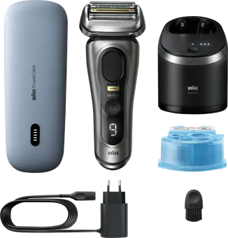 1x elektrisch scheerapparaat 1x 6-in-1 SmartCare Center met cartridge voor een langere levensduur van het scheerapparaat 1x PowerCase 1x oplaadsnoer 1x reinigingsborsteltje