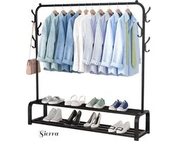 Sierra Industrieel Kledingrek Enkele Stang - Metaal - 110x33x155 CM - Zwart - Opbergruimte Voor Schoenen - Garderoberek Met Haken