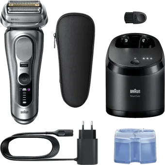 1x Braun Series 9 PRO+ scheerapparaat, 1x reisetui, 1x oplader, 1x reinigingsborstel, 1x 6in1 SmartCare Center, 1x scheerapparaatverzorgingscartridge.