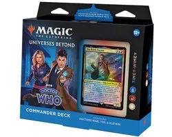 De Magic The Gathering Universes Beyond: Doctor Who Commander Deck is een speciale set binnen het Magic The Gathering universum die elementen en personages uit de populaire Doctor Who-serie integreert. Deze deck biedt spelers de mogelijkheid om met hun favoriete Doctor Who-personages te spelen in een strategisch kaartspel. Het is ontworpen voor zowel nieuwe als ervaren spelers die de unieke combinatie van sciencefiction en kaartstrategieën willen ervaren.